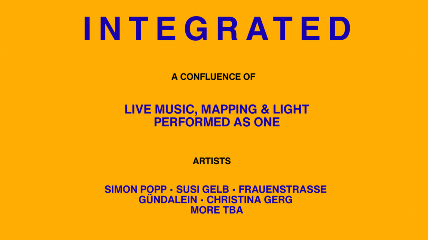 INTEGRATED ist ein Live-Format, in dem Sound, Visuals und Raum miteinander verschmelzen. Musiker:innen und Visual Artists kommen zusammen, um gemeinsame Performances zu kreieren, in denen Musik und Bild zu einer immersiven Erfahrung werden.